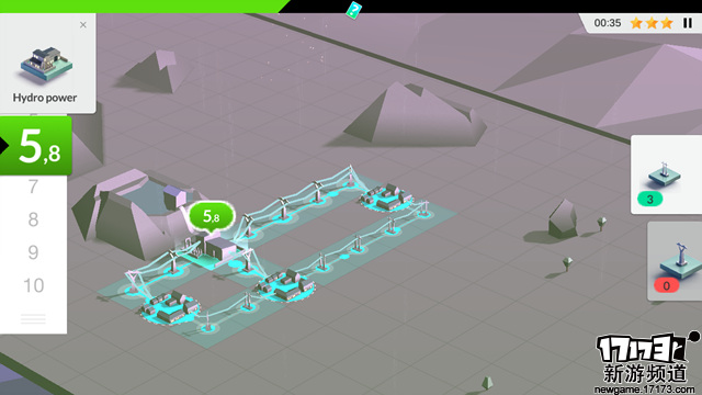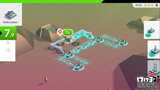 随着玩家的关卡挑战进度推进,游戏的难度也随之上升,同时为7-8座城市供电更多的是考验玩家们的规划能力,使用有限的线缆来达成供电平衡的同时还要时刻准备着应对各种电力不足及电力过载的情况,甚至于需要实时的进行电压调整操作来确保顺利的过关。