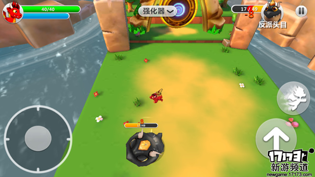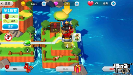 游戏《龙之大陆(Dragon Land)》不论从人物造型到场景设计均以3D建模为主,并且整体的画面上采用了鲜艳的色彩更是为游戏赋予了Q萌的属性。游戏以关卡的形式展开,由起点至终点不断向前,闯过一个个陷阱,收集沿途的金币并解决沿途的守卫。