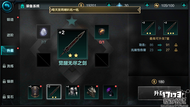 游戏中的装备系统很大程度上依然延续了前作的设定,只不过将武器的升级强化的数值设定以及武器装备的获取方式上变得更加的平滑化,装备的进阶、升星、洗练、镶嵌宝石等等功能基本上都是我们所常见的功能,不过游戏在武器的外观上依然保留了每把武器独特的外观。