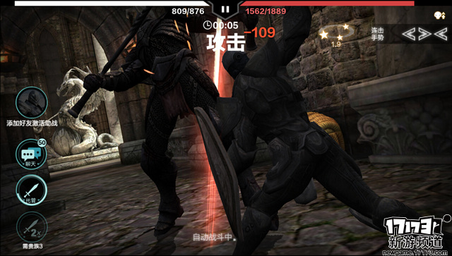 虽然游戏在战斗的操作上操作性十足,但是本作的战斗玩法的时间消耗比起前作增加了许多,反复的划屏挥砍难免会让人感觉疲倦,好在游戏加入了自动战斗模式,自动格挡、闪避以及攻击,虽然挥砍的过程并不是那么连贯,但是不得不说有的时候系统自动战斗的操作比起自己操作还要稳,这也使得游戏不仅更好的协作玩家。