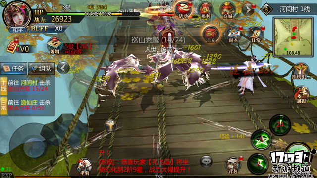 游戏在整体画面的UI布局上还是与传统MMORPG相类似,带有收起功能的按钮虽然让界面清爽许多,但是对于小屏手机来说,诸如跳跃一类的按键设计在技能按键边显得有些紧凑,并且过小的按钮也很容易产生误操作。不过现在自动战斗基本上已成为该类游戏的标配,真正需要玩家操作的一般都是野外PVP以及一些BOSS挑战时,所以对于游戏的UI设计也不必太过在意。