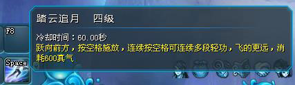 鼠标点击追云踏月技能或按下快捷键可以使用技能多段跳跃,上天入地哦