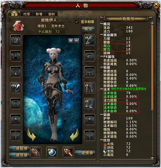 法术命中:表示角色的法术命中率,同时表示降低目标躲闪你的法术攻击的几率