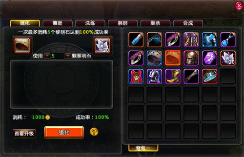 2.提升强化等级需消耗:相应强化等级的黎明石、一定数量的金币