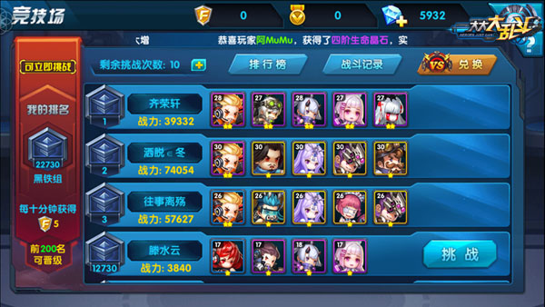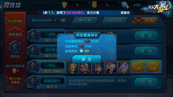 当玩家到了10级之后,玩家就要开始关注主角英雄的战力了。如果此前有哪些副本没有三星通过,那么现在就是治好强迫症的最佳时机。利用多余的体力去刷副本奖励,升级战力后再回刷副本,三星满分再不用愁!16级之后,玩家便可体验竞技场玩法。竞技场前期,玩家可以一路飙升狂领钻石。同期精英副本也正式开启,不妨去搜集一些英雄碎片,为组建高资质英雄战队做好准备吧!
