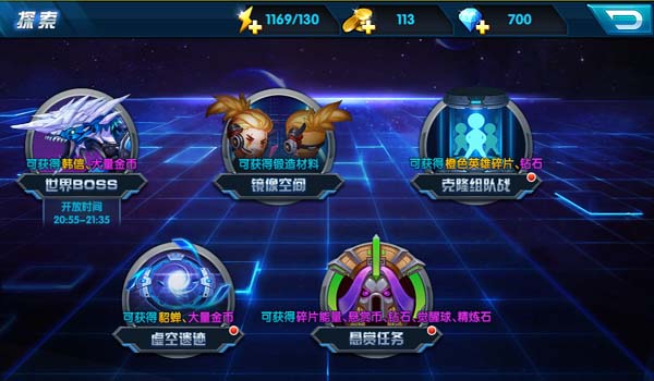 那么在哪里可以进入呢,两种方法,第一种方法,主界面中位于进击的首领狩猎场和排行榜之间,有两个大大大的探索字样,进入后,一共分为五个活动,分别是镜像空间,世界boss,克隆组队,悬赏任务,虚空遗迹。(后面会陆续介绍后四个活动的)点击镜像空间即可参与活动。第二种方法:主界面的最最最最右侧,点击军团界面后,进入军团的最最最右侧,直接进入镜像空间,也可以进入。