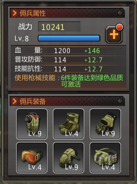 给佣兵装备了强力的武器,但是在作战的时候佣兵却始终普通攻击而不使用技能?这是因为佣兵的装备等级不够。佣兵穿戴的6件装备全部达到绿色品质后就能使用枪械技能,佣兵等级达到25级才能达到这个要求。