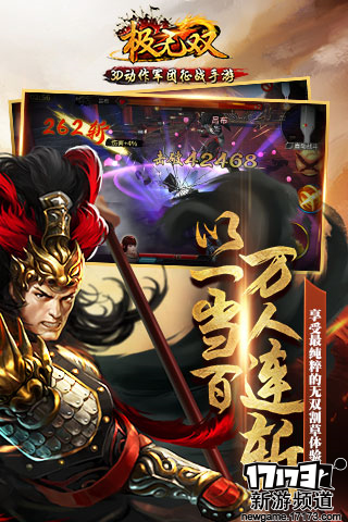 3D动作军团征战手游极无双由马伯庸亲自构建全新世界观,极无双杭盖Zeta携手打造大气古风配乐;一骑当千,万人连斩,主机般割草快感体验;高清画质,恢弘世界,重返真实三国古战场;百余武将,群雄逐鹿,自由切换武将纵享热血三国;军团国战,策略攻防,携兄弟一统天下;成就三国霸业,真兄弟一起战!