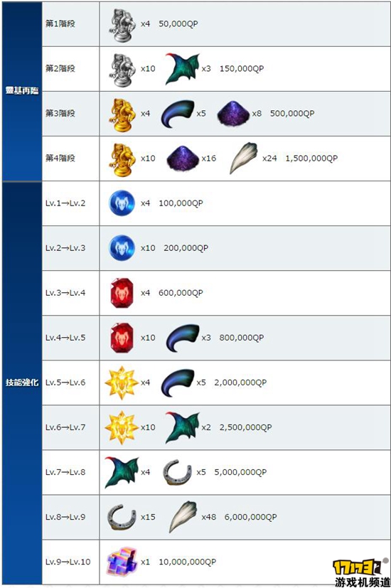 | 长江骑士兰斯洛特斯灵基再临技能升级素材一览 | |