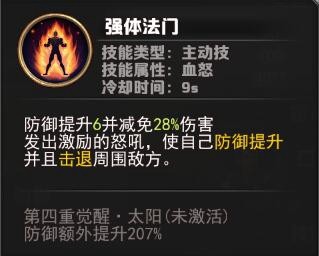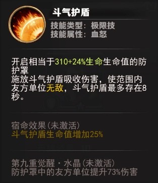 坦克常有的技能,增加防御并减伤,和其他坦克角色相比没有什么特别之处。