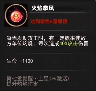 角色升到紫色2星时解锁该技能,这个技能在前期作用微乎其微,因为伤害和攻击力相关,而加攻击的装备肯定优先给输出。不过,好在副属性加生命,还算有价值。