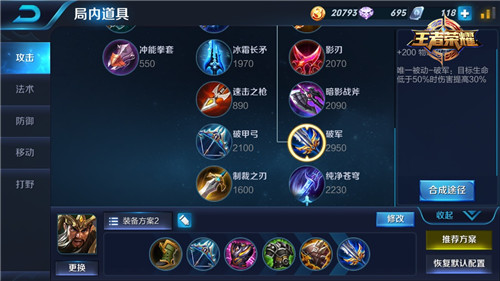 【六神装】影忍之足,破甲弓,暴烈之甲,振兴之铠,不祥征兆,破军。