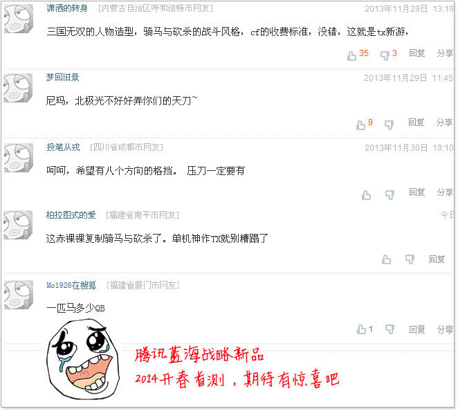 “三国无双的人物造型,骑马与砍杀的战斗风格,CF的收费标准”