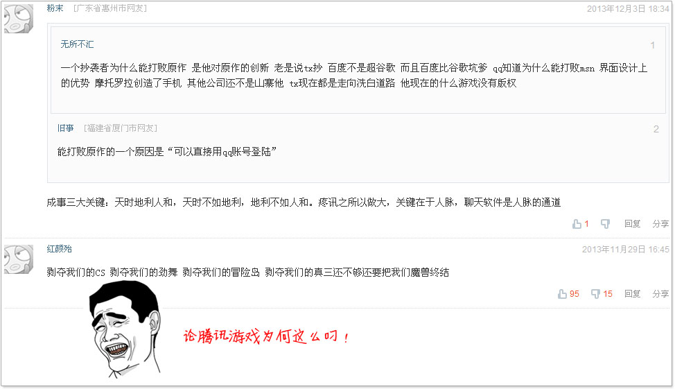 “能打败原作的原因是‘可以直接用QQ帐号登陆’”