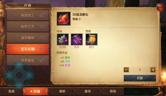 宝石制作需要宝石图纸和生产素材,生产素材主要是矿精,挖掘等级达到一定等级可以制作矿精。