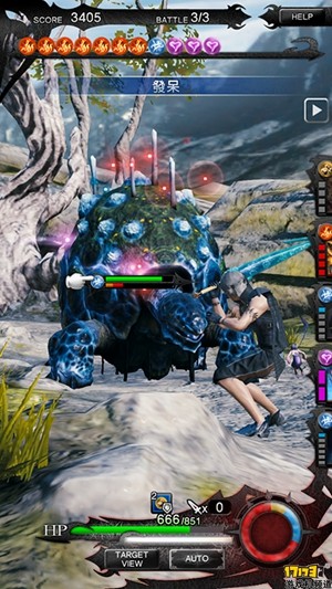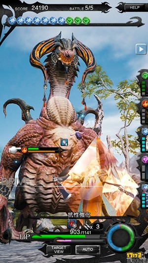 虽然看起来操作很复杂,但搞懂这个塬理之后,在精緻的战斗画面与操作的滑动上会有一种真的在和怪物进行激战的错觉,果然游戏还是高画质的好阿!