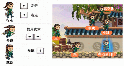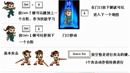 1、TAB:对话变更 2、ESC:环境设定 3、PSC:截图 4、Q: 5、W:看大地图 6、E: 7、I:包袱 8、S:角色 9、D:武功 10、F:聊天 11、H:商店 12、M:地图 13、ENTER:输入对话