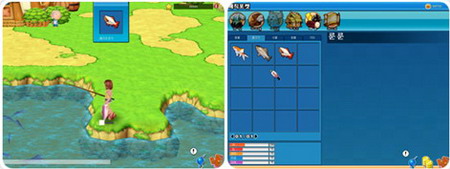 可以在园子中用“D”键钓鱼和摘果子,不过你必须装备鱼杆和其他工具