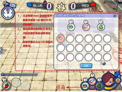 在比赛中同样可以通过按“Tab”键或者鼠标点击“more”打开技能栏来更换技能: