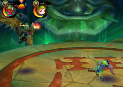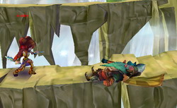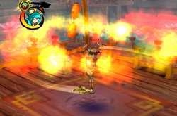 当人物眩晕倒地的时候可以走到对手身旁按下轻攻击键用脚踢打对手,同样也可以通过投掷按键,将其举起,并丢出场外,是不是有点像摔跤啊,打的爽快才是游戏的真正核心。