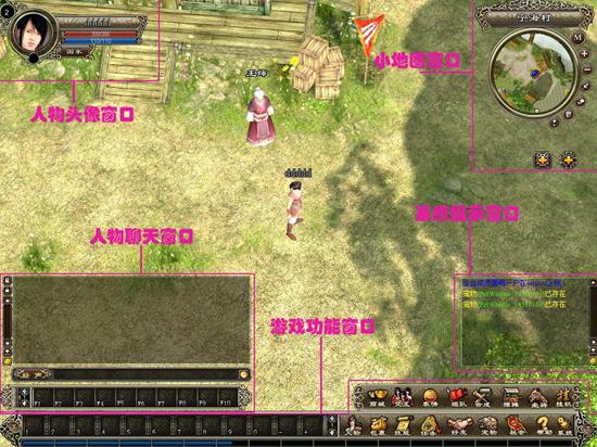 屏幕左上角的人物头像窗口分别为人物头像、人物等级、表示生命的红色血条、表示魔法值的蓝色魔法条以及攻击模式