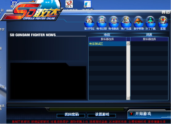 开始界面十分简洁,官方网站账号注册等也使用了敢达扭蛋十分可爱,但是在点击找回密码的时候缺无反应,部分玩家反应点击后竟然出现了谷歌的界面,虽不是什么大问题,望久游能给予修正
