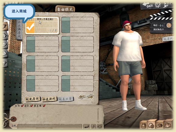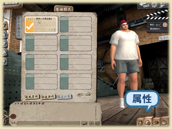 2 完成大区和频道选择后,进入房间列表界面,点击创建房间按钮,进行房间创建。