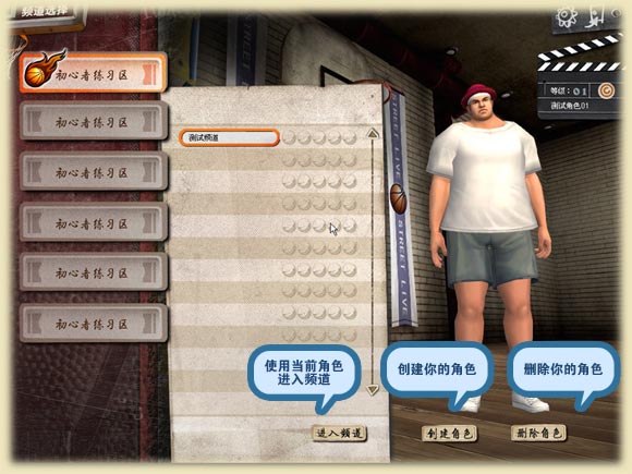 1 成功创建人物角色后,进入游戏大厅界面,选择进入相应大区和频道。