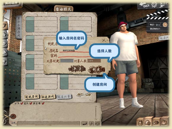 3 进入房间创建界面后,输入房间信息,如房间名、房间密码、人数后,点击创建按钮。