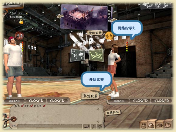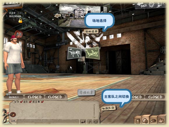 4 完成房间创建后,进入房间界面,进行场地选择、主客队切换等操作。
