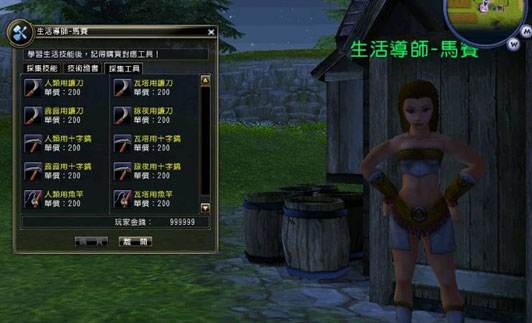 生活技能是协助您除了打打杀杀的日子外,可以在閒暇之馀从事一些採集或生产性的行为。一方面可以将获得的材料、原料贩卖换取金钱,另一方面也可以製造出药水、武器防具、食物等各种商品,除了可以自己使用外,还可以送给亲朋好友,增进感情呢! |