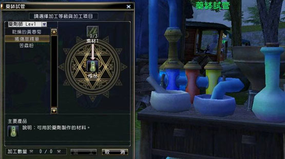 加工技能是指「将採集或打怪所获得的原料,经过重重的手续精製成製造物品时所需要的高阶材料」。有时候在加工的过程中,会意外获得被称之为「副产品」的产物,这些副产品有时候价值更是非凡。 |