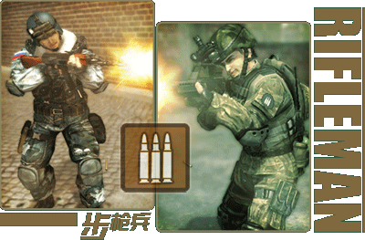 兵种特点:主武器使用AR(突击步枪)系列、防御力高,投掷武器的专家