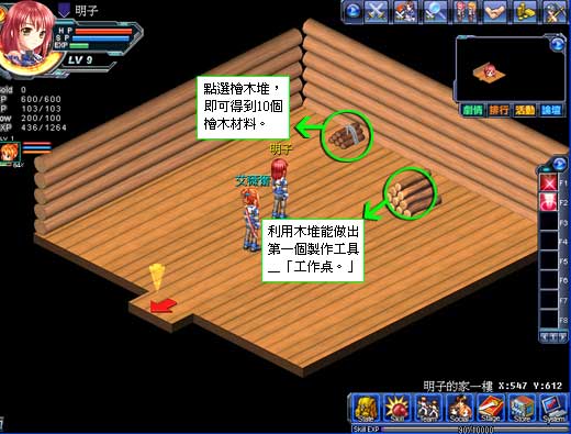 在玩家第一次进入小木屋时,可以得到10个桧木,这可是初期制作工具的重要材料喔!而一旁的木堆则是一开始的制作材料,玩家点选制作选单后,即可开始制作工具了!