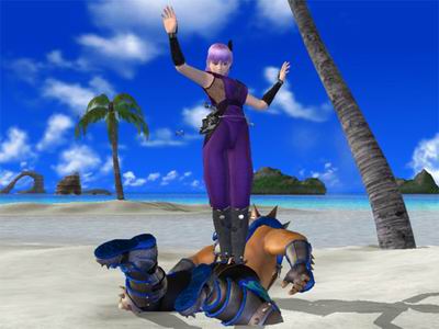 绫音(配音:山崎和佳奈)DOA系列的当家花旦之一,身世悲惨的绫音在全球DOA玩家心目中的地位不亚于其同母异父的姐姐“霞”。从小她就是一个并不希望被生下来的孩子,被雾幻天神流中的反面流派“霸神门”作为女忍者而培养起来的。紫色作为她的标志性颜色,相信早已俘获大量玩家的心。