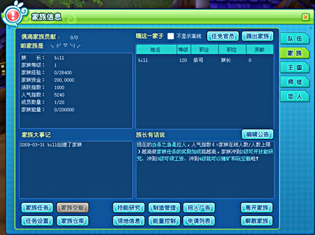 5、输入自己的家族名,系统扣除启动资金,恭喜你的家族成立了