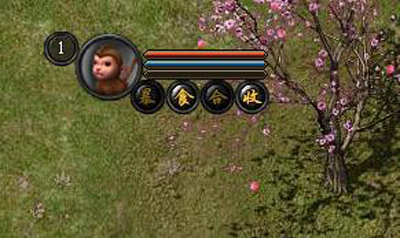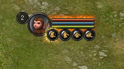 2.在你角色状态显示栏下方会增加宠物状态显示栏,红色部分代表宠物的生命值,全部消失宠物死亡,黄色部分代表宠物的暴怒值,全满可以激发出暴怒状态。