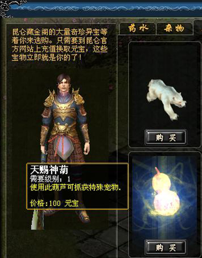 3.《昆仑Online》中大部分宠物都可以通过九黎葫芦进行抓捕,但部分宠物需要通过商城购买的天赐葫芦来进行抓捕。