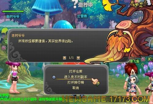 13级就可以进到第一个副本了,叫做良木副本。为什么叫良木,可能是和NPC有关吧 ,进副本的NPC是老树爷爷,呵呵 所以叫良木。每个副本都有很趣味的BOSS,杀死后会出精致的装备。