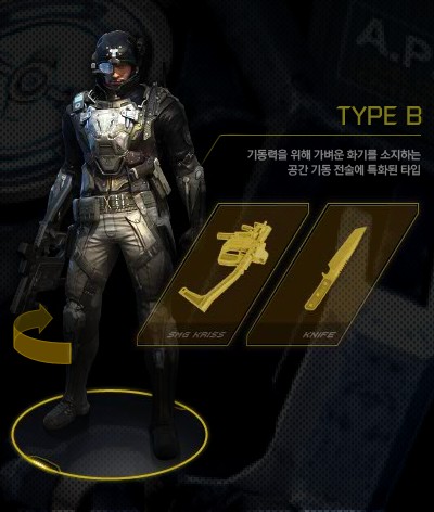特点:为了确保机动力,使用轻型武器。 使用武器:KRISS冲锋枪、匕首