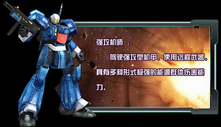极强的远程打击能力,具有高精准性、范围广的特点;所以该职业类型的机甲在战场上具有领敌丧胆的范围杀伤能力、单体阻击能力,各种阻击任务、团队作战都需要强攻机师作为主要战斗力。