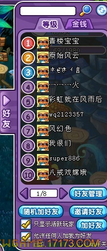 下面是最主要的好友系统,如果没有这个,开心果这个游戏就是白玩。好友系统可以让玩家去别的玩家的农田串门玩,所谓偷采,当然不是在自己地里偷啊,所以好友系统是起了关键作用的。