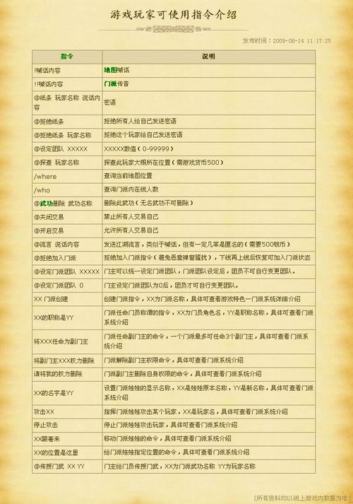 武者OL玩家指令