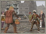 不只是海上,在陆上的战斗也将有大幅度的进化。除了之前的剑与长矛等近身战以外,火枪等射击道具也可以开始使用,增加了高度合作的战术重要性。此外,船员们私自进行的决斗也开始盛行,双方认可下的对战将会变成家常便饭。