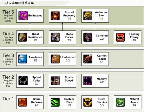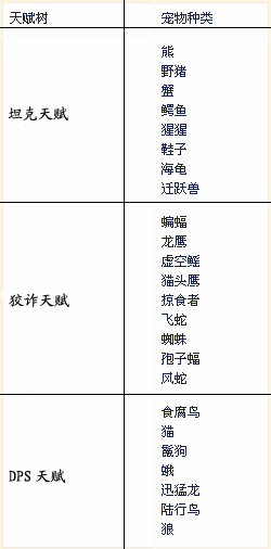 宠物天赋树有3个类别:坚韧(****系),狡诈(辅助系)以及残暴(DPS系).