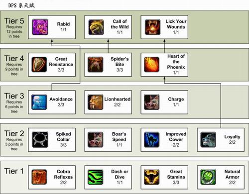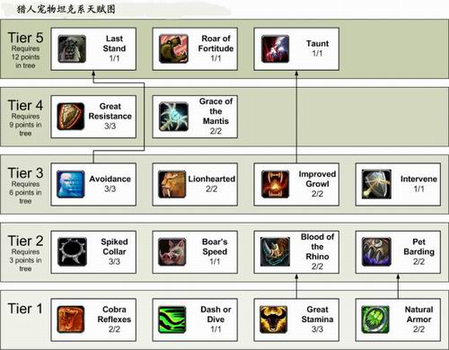 * Loyalty 忠诚 : 宠物的攻击有10/20%的几率增加5/10%快乐值并且恢复2.5/5%的宠物最大生命值。(上帝啊,这是个很好的Raid宠物天赋)