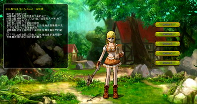 游戏的登陆界面还是比较新颖的,点击进入游戏之后,就会有服务器选择的画面弹出,不过由于是在测试服上,所以只开出了一个服务器。登陆的背景比较酷炫,是动态的效果,一个身背大剑的骑士、一个柔柔温情的公主、一个蕴含强大能量的魔法师,四处随风飘落的枝叶散落在三人的周围,十分的有意境。这应该是剧情中比较重要的三位主角,笔者早已把有关这个游戏的相关背景看过,值得一提的是游戏剧情是相当的丰富,从登陆画面给人带来的震撼感觉就可以知道。