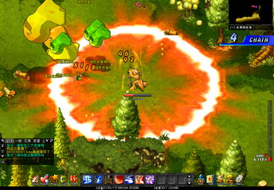 游戏的技能包括埋设累【埋设地雷】,击退类,控制类,浮空类,中毒类,辅助类,状态类,牺牲类等多种技能类型,可以说是国内游戏中组合最丰富的。游戏的招式众多,相比招式的华丽,玩家更容易感觉到的是光影效果的绚丽,带来感官上的刺激。