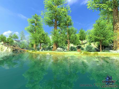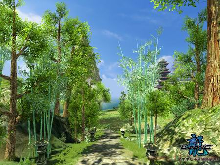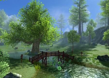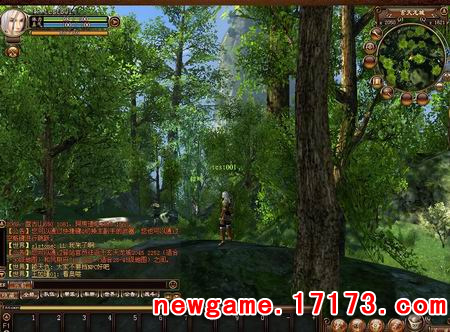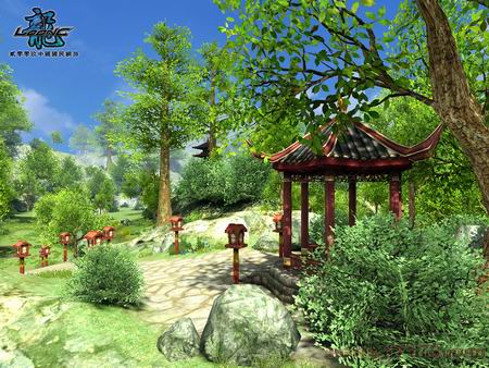 进入游戏之后,首先来观察一下人物的面部效果,场景绘制,整体来说,人物的勾勒比较细腻,场景制作的也比较有中国特色,游戏中的光影效果做的比较好,阳光穿插树林照下来的感觉很不错。