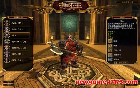 游戏中目前存在4个种族:人类,矮人,霍比特人,精灵,除了矮人外,玩家可以自选性别。游戏中会出现一段精美的动画来介绍每个种族。而每个种族也拥有属于自己的种族特色。